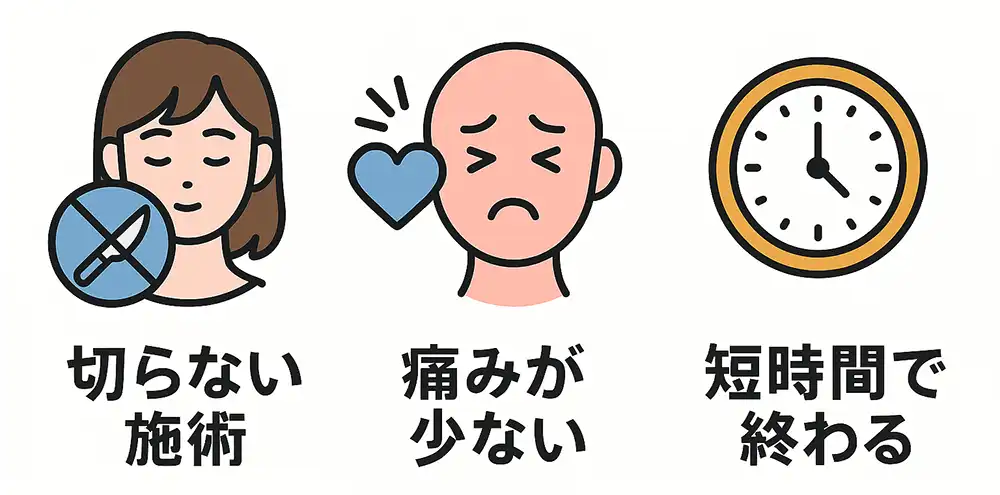 これらの特徴から、「忙しくて手術に踏み切れない」という方でも取り入れやすい治療法です。