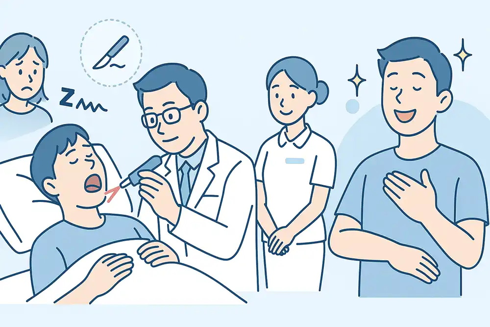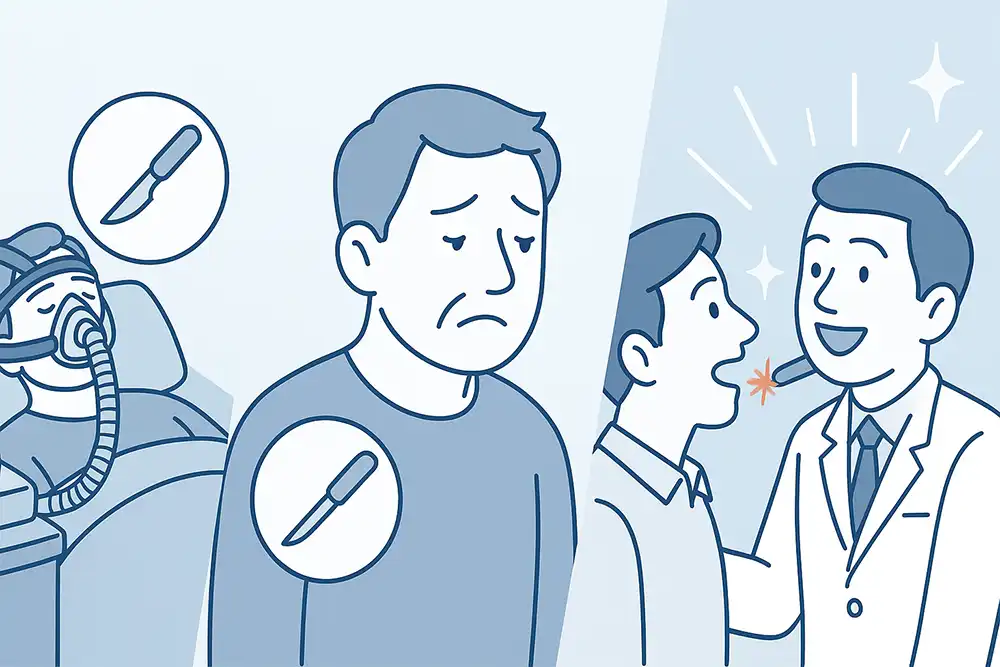 これらのレーザー治療は、いびきの原因となる口蓋垂や軟口蓋を引き締めることで気道を広げ、CPAPやマウスピースが続かなかった方でも、日常生活に支障なく治療を続けやすいと評判です。
